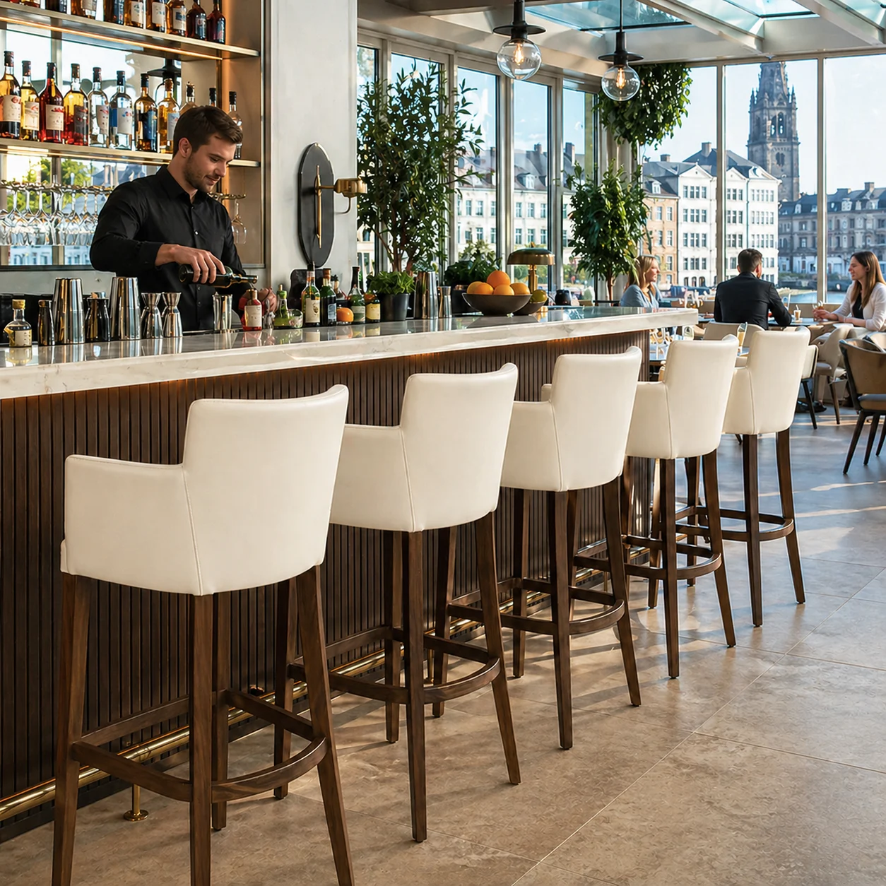 Speziell entwickelt für Restaurants, Cafés und Bars, die ihre Gäste mit einer einladenden und professionellen Atmosphäre verwöhnen möchten. Der ergonomische Sitz und die Armlehnen bieten ultimativen Komfort, der Ihre Gäste dazu einlädt, länger zu verweilen. Das warme Holz und die modernen Farben schaffen eine zeitlose Optik, die perfekt zu klassischen sowie modernen Gastronomiekonzepten passt. Wählen Sie einen Barhocker, der Luxus, Funktionalität und Stil vereint – die perfekte Ergänzung für ein gastfreundliches Gastronomiekonzept, das beeindrucken möchte.